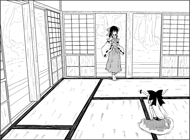 モブキャラとしても登場霊夢さん。 なんとなく落書きしてたせいでなんとなくな表情に…お許しください!