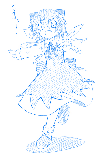 今週はテスト週間だから勉強してたんだが、気付いたらチルノを描いていた!!